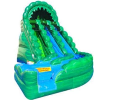 This 22ft Dual Lane Slide is is a fun filled water slide with 2 lanes of thrill and excitement for your party guest! Blast down this 22Ft slide and make a splash in the pool that is sure to be the hit of the party!!! This slide is great in a variety of settings from outdoor events, church events, school events, backyard parties, and so much more. Be sure to book now, throw on a swim suit, and watch the whole family enjoy hours of fun.