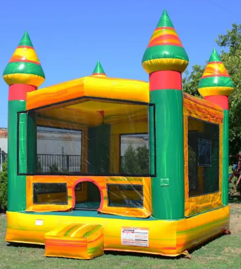 Delivered to your event! The XL (15ft x 15ft) Fiesta Bounce House is sure to give your event an exciting look with fun and laughter for riders that enter this amazing bounce house. This bounce house is a Party Favorite and sure to be a highlight for your event!