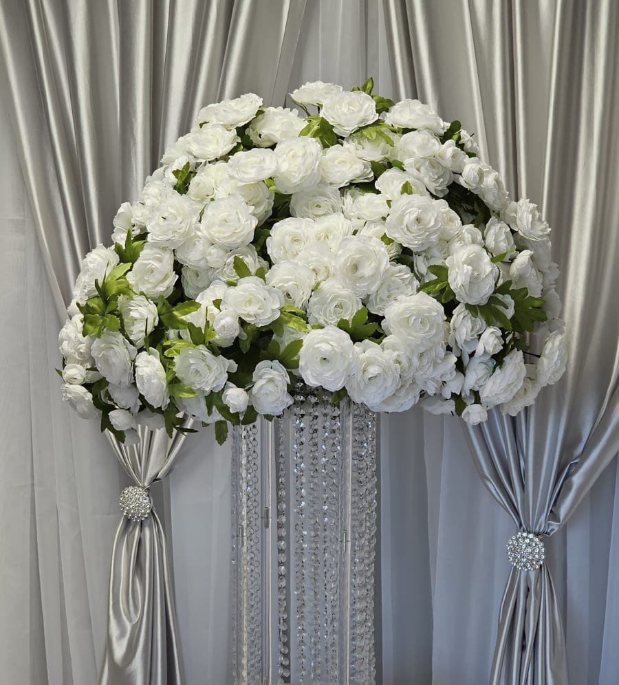 Available for rent today! This 30in large silk floral arrangement is the added touch of beautiful floral decor sure to make your event an unforgettable celebration! This arrangement adds a touch of elegance great for Weddings, Quinceañeras, Corporate or Social Events, Proms and more. Celebrate your special event while saving money by choosing our silk flowers to achieve an exquisite spectacular event!